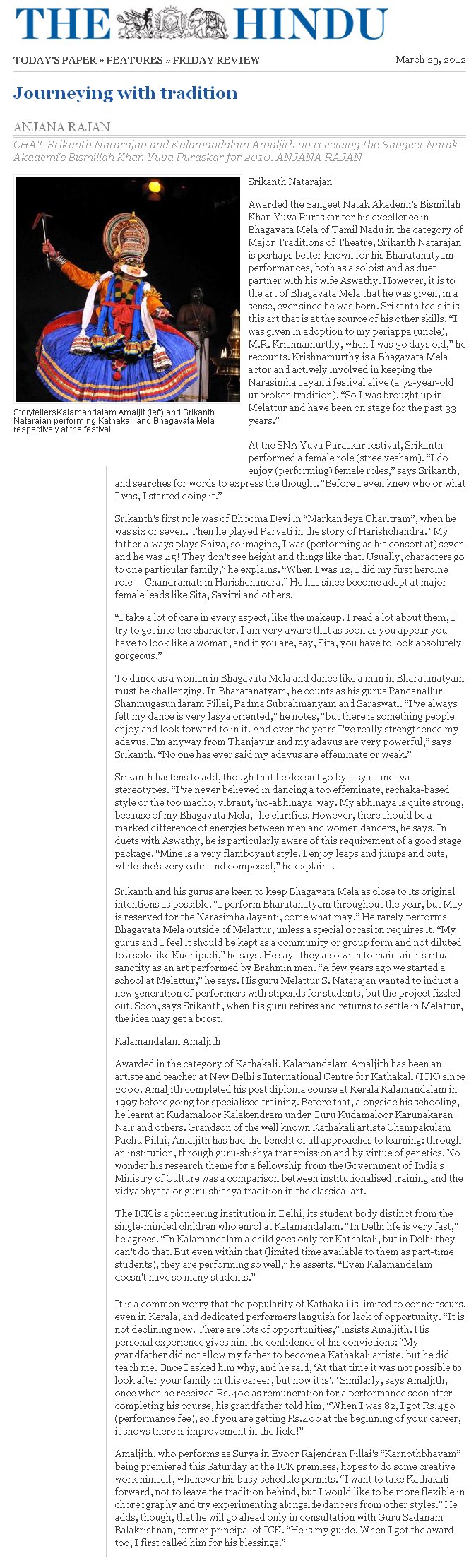 Anjana Rajan, The Hindu, Friday Review, Mar 23, 2012