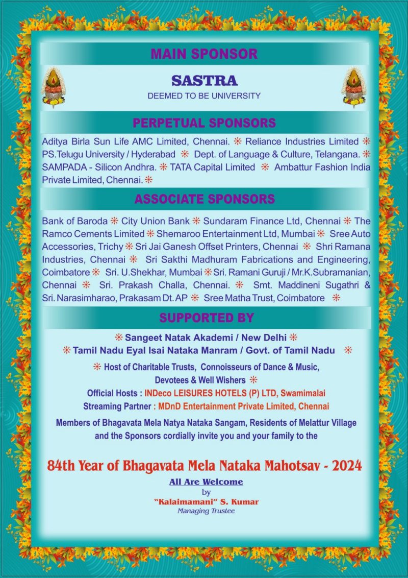 84th Year of Melattur Bhagavata Mela Nataka Mahotsav